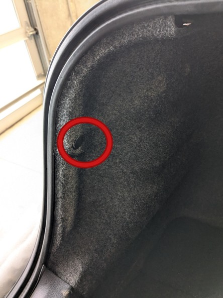 Open the trunk and remove the plastic push clip securing the trunk carpet, then peel the carpet back to access the taillight mounting area.