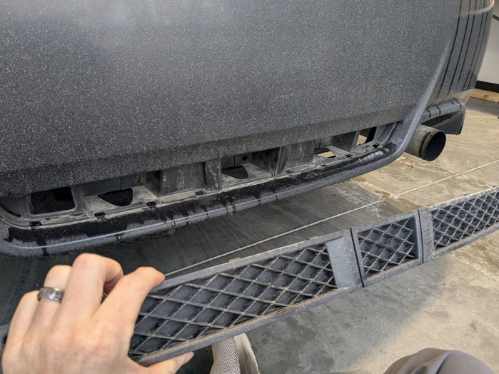 Reach behind the rear bumper and push out the lower plastic trim, then remove it completely and set it aside.