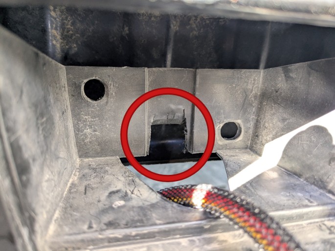 Carefully trim a small square opening in the back of the bumper pocket so the light can sit flush once installed.