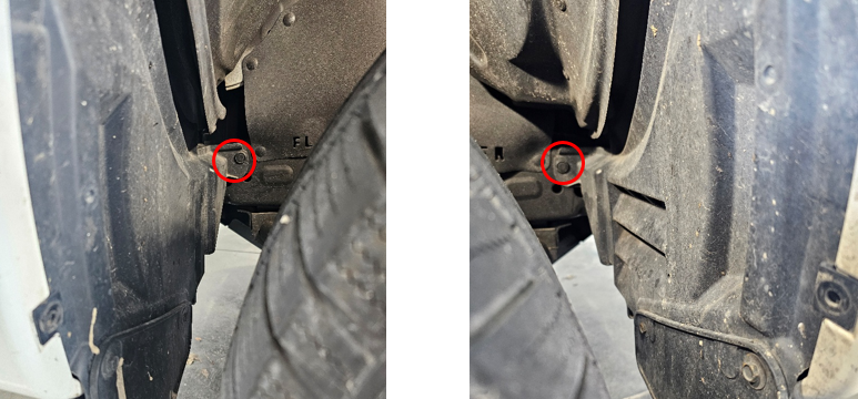 Use a trim tool to remove one push pin on each side securing the front fender liners.