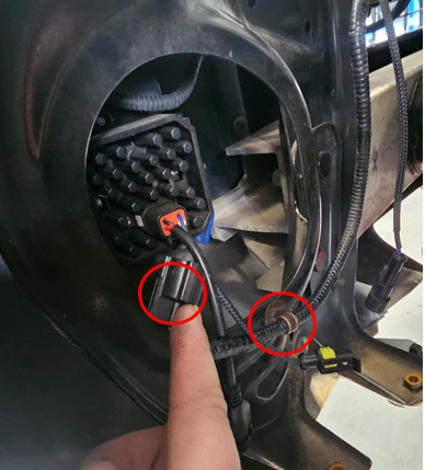 Disconnect the two multi-pin electrical connectors located behind each mid bumper panel.