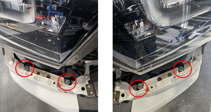 At this point, the bumper assembly and crash bar components are removed and you have access to the crash bar support bracket studs. The mounting steps now differ depending on whether you are installing an SS30 or SS40 lightbar.