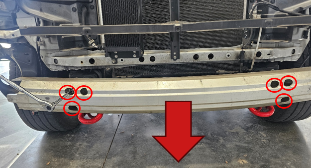 Reinstall the crash bar and torque the nuts to 52 ft-lbs. Reinstall the bumper cover temporarily (or hold it in position) and verify the lightbar is vertically centered in the opening.