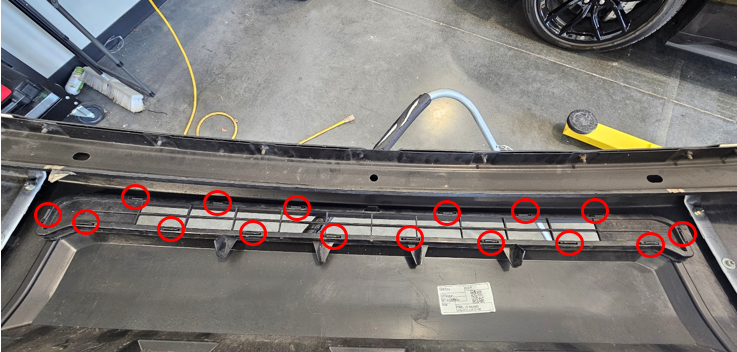 Starting from the inside edge, carefully pull the mid bumper panels outward to release the retaining clips.