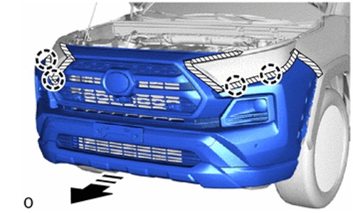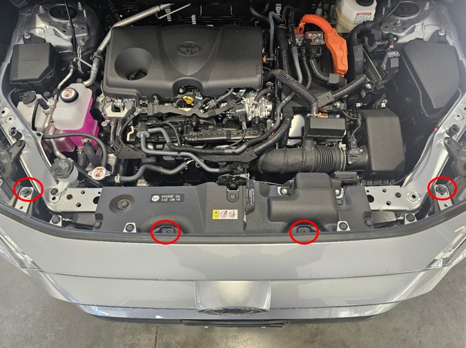 Open the hood and use a 10mm socket to remove the fasteners securing the top edge of the front bumper cover.