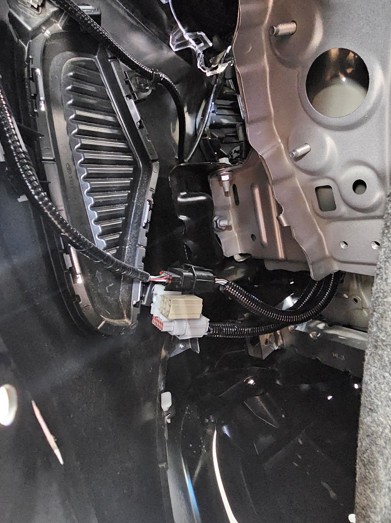 Reach behind the driver-side wheel liner and disconnect any electrical connectors attached to the bumper cover, including the factory fog light harness.