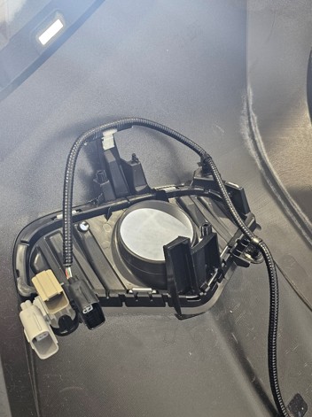 Using a trim tool, release the wiring harness clips attached to the back of the factory fog light bezels.