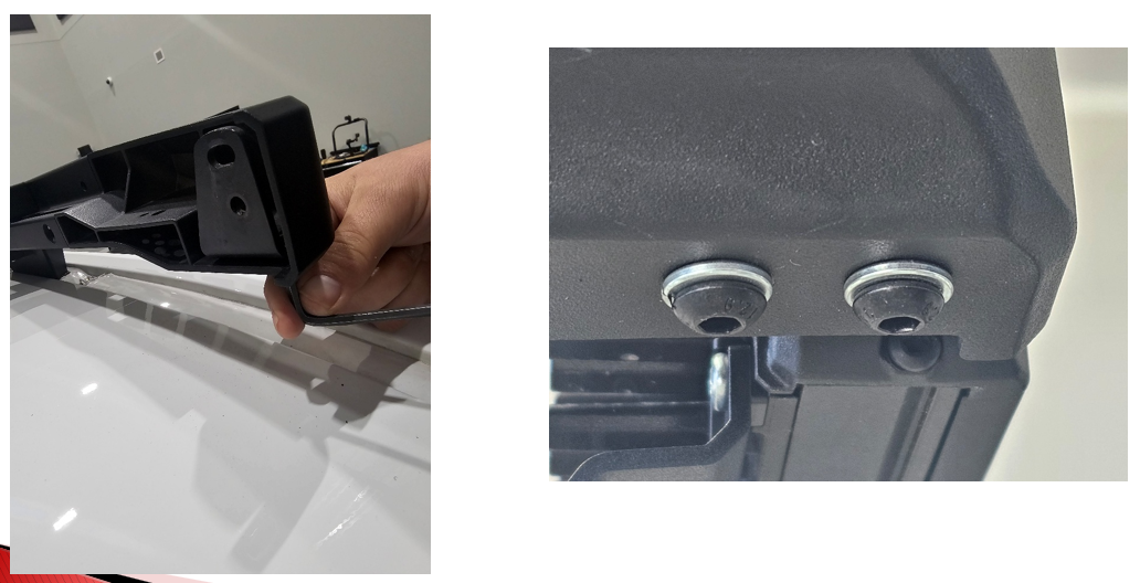 Using a 5mm Allen key, follow the Kuat instructions to install the corner caps onto the DEK side rails. The specific corner caps used will depend on the lighting configuration included with your kit.