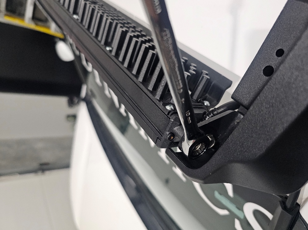 Using a 10mm wrench, install the CrossLink assembly or Stage Series lightbar onto the L-brackets. Once the lights are positioned correctly, tighten the L-bracket hardware from the previous steps.