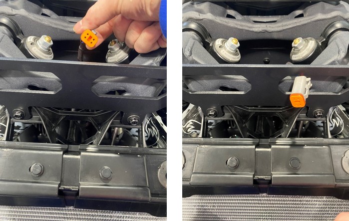 Plug the Deutsch connector into the light bar and confirm you hear/feel a click when the lock engages.
