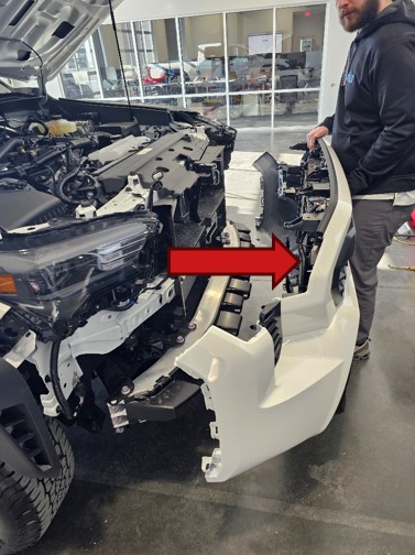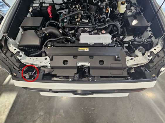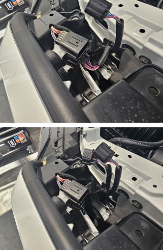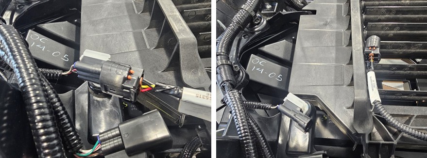 Disconnect the two multi-pin electrical connectors located near the passenger-side headlamp.