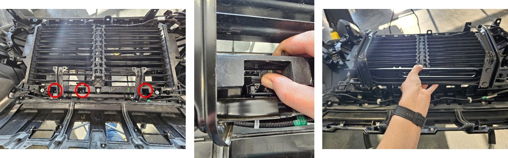 Remove the grille surround trim by removing the screws and releasing the plastic retaining tabs.