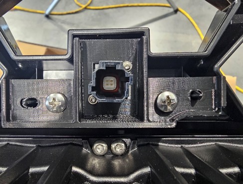 Loosely attach the lightbar to the mounting brackets using the included hardware, ensuring the connector is oriented toward the driver's side.