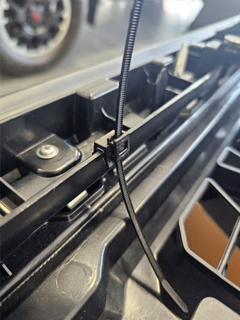 Attach the included edge-biter zip ties along the top grille support to secure the wiring.