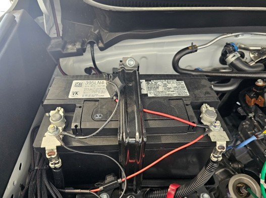 Using a 12mm socket, connect the power and ground leads directly to the battery terminals.