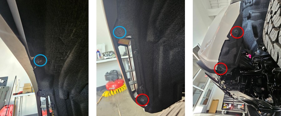 Using a 10mm socket, remove the five fasteners securing each front wheel liner. Repeat on both sides.