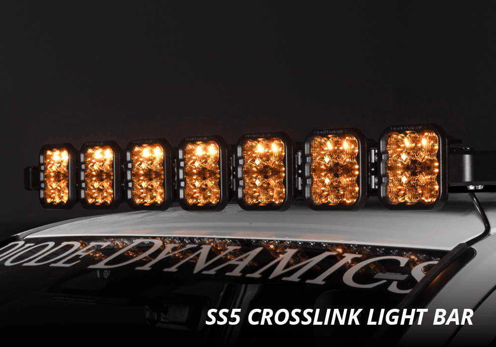 Choose Your Lighting Setup. The Diode DEK Roof Rack is available in two integrated lighting configurations: the SS5 CrossLink LED lightbar or a Stage Series LED lightbar. The SS5 CrossLink LED lightbar links seven or eight SS5 LED pods together into a single lightbar for a bold, aggressive appearance. Depending on the rack size, you can select either an SS40 or SS50 Stage Series LED lightbar for a cleaner, low-profile look.