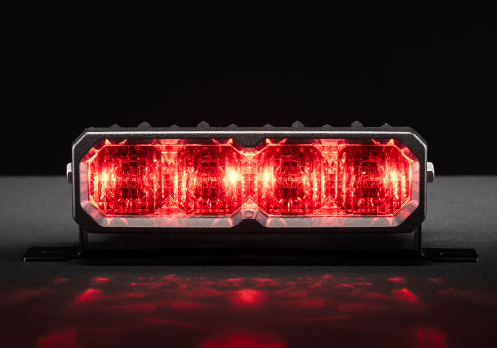 Fully Illuminated Backlight. This SS6 LED Light Bar features a distinctive red backlight that fully illuminates the TIR optic for a unique, standout appearance. The red backlight is perfect for rear-facing setups, providing added visibility and a custom look when parked or stopped on the trail.