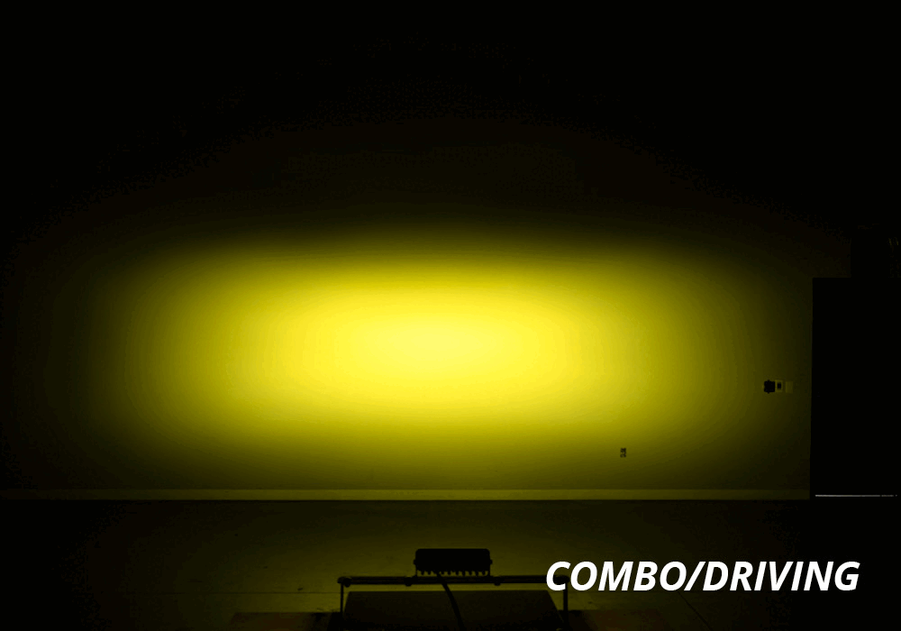 The all-new Combo/Driving pattern has been engineered to blend distance and width into one balanced beam pattern. Everyone wants a great all-around light, and while other options on the market try to tackle this by combining two patterns, the resulting output is less than desirable–spot gives you a harsh hotspot, while a flood or wide pattern produces unwanted glare and wasted light. Our new Combo/Driving optic uses dozens of carefully-designed pillow optics to produce a blended, even output that measures 60x30 degrees and gives you throw downrange while still providing ample foreground illumination. It’s the ideal choice when you want one bar that can handle just about any situation, and it elevates the standard for what a Combo light should be.